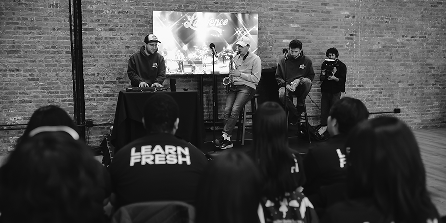 Les élèves ont assisté à une représentation privée du groupe Lawrence, partenaire de Learn Fresh. Pour donner vie au jeu EcoTour, les étudiants ont également pu assister à une représentation privée du groupe Lawrence, qui est un partenaire actif de Learn Fresh. En face du Prudential Center où le groupe allait se produire devant des dizaines de milliers de spectateurs, Lawrence a joué des chansons pour le groupe d'étudiants et a donné des indications sur la façon dont il incorpore des pratiques durables lors de ses tournées.